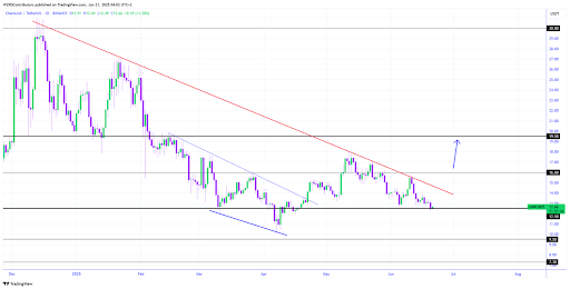 Якщо покупці можуть повернути контроль, Cryptowzrd визначає 16 доларів як наступний критичний опір, а потім більш істотний бар’єр у $19,50. Очищення цих рівнів може сигналізувати, що приплив справді змінився, прокладаючи шлях до більш широкої зміни тенденції, а не короткопродуктивного відскоку.