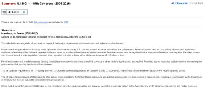 Законопроект робив більше, ніж створив стаблекуїни;Це дало чітке показання того, що відбувається розумне та працездатне регулювання, так чи інакше. Це дає дуже потрібну стабільність, створюючи нові проекти криптовалют для запуску в сприятливих умовах.
