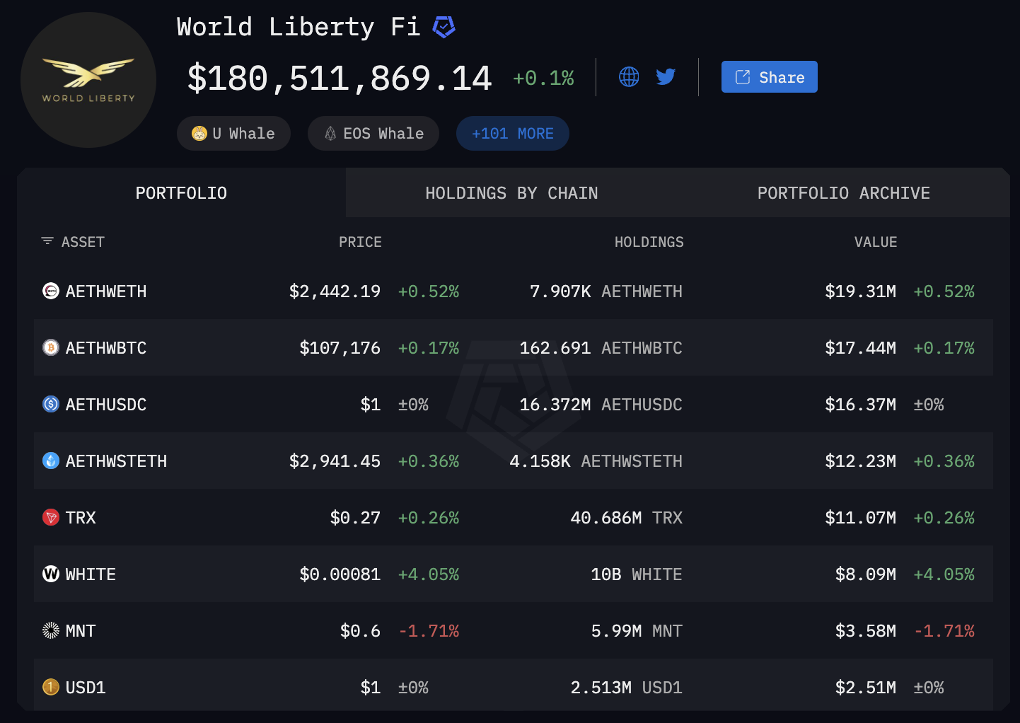 WLFI продовжує отримувати підтримку від інституційних інвесторів як стабільних доларів США та токенізації активів у реальному світі-два сектори, на яких платформа Defi зосереджена-стають стратегічно важливими для підвищення суттєвості долара США, головного пріоритету адміністрації Трампа.