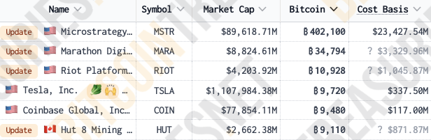 MARA Holdings залишається найбільшою публічною компанією з майнінгу криптовалюти за ринковою капіталізацією. За даними сайту BitcoinTreasuries, MARA Holdings є другим за величиною корпоративним власником біткойнів після MicroStrategy.