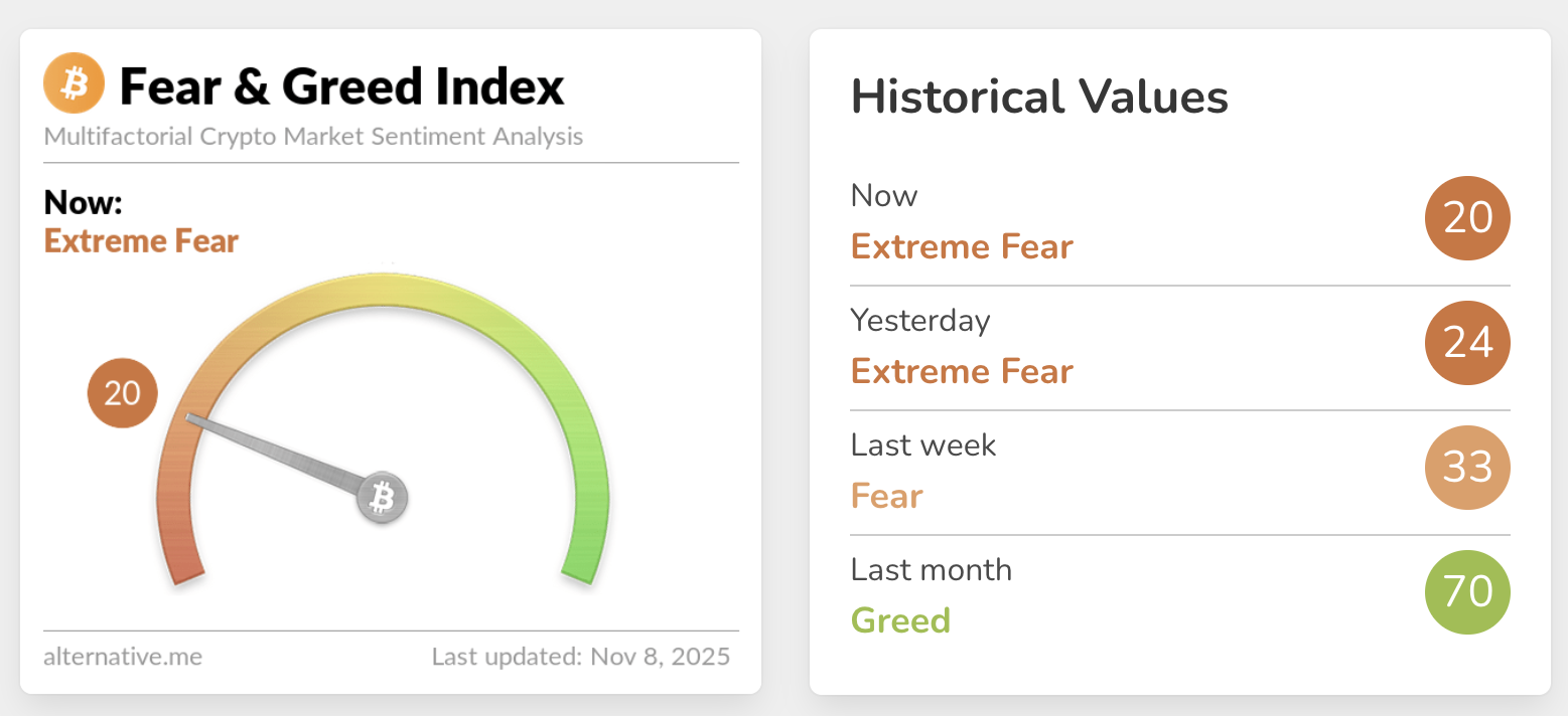 Це сталося на тлі того, що настрої на ширшому ринку криптовалют різко впали, і індекс страху та жадібності щодо криптовалюти, який вимірює загальні настрої ринку, опублікував у суботньому оновленому оновленні показник «Надзвичайний страх» 20.