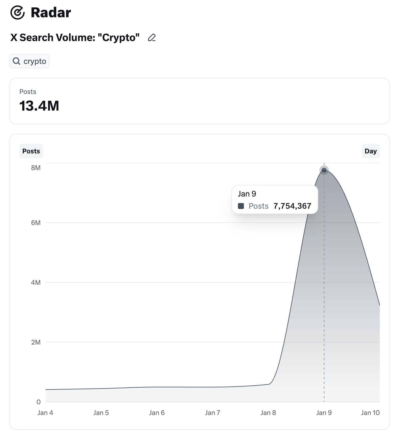 У недільній публікації на X Джу вказав на різкий сплеск автоматизованої активності, пов’язаної з ключовим словом «крипто», посилаючись на дані про понад 7,7 мільйона публікацій, створених за один день, що на 1200% більше, ніж у попередніх рівнях. За словами Джу, потік низькоякісного контенту спровокував алгоритмічні репресії, які також впливають на справжні рахунки в криптовалюті.