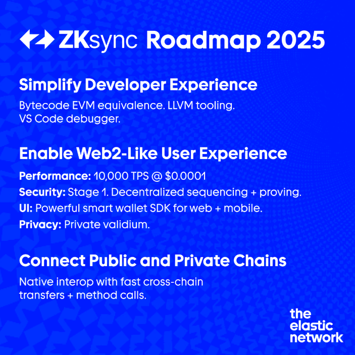 Дорожня карта окреслює плани вдосконалення ZKsync Elastic Network і ZK Stack, позиціонуючи їх як бажані інструменти для розробників блокчейнів.