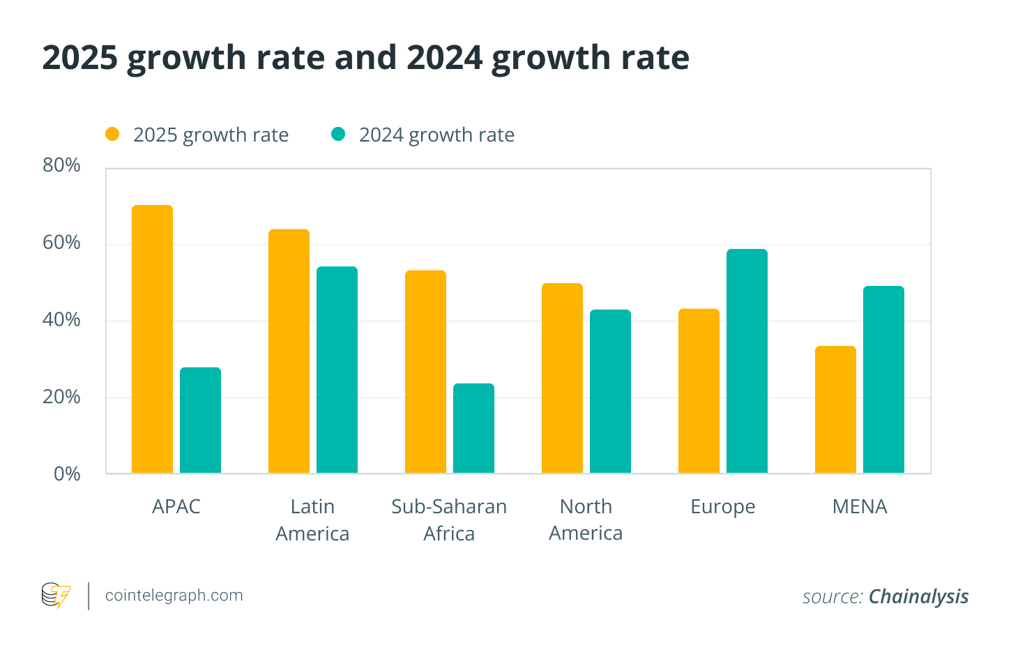 Главный экономист цепного анализа Ким Грауэр заявила Cointelegraph, что усыновление криптовалюты в основном ускоряется на зрелых рынках с более четкими правилами и институциональными рельсами, а также на развивающихся рынках, где стаблеки преобразуют то, как люди управляют деньгами.