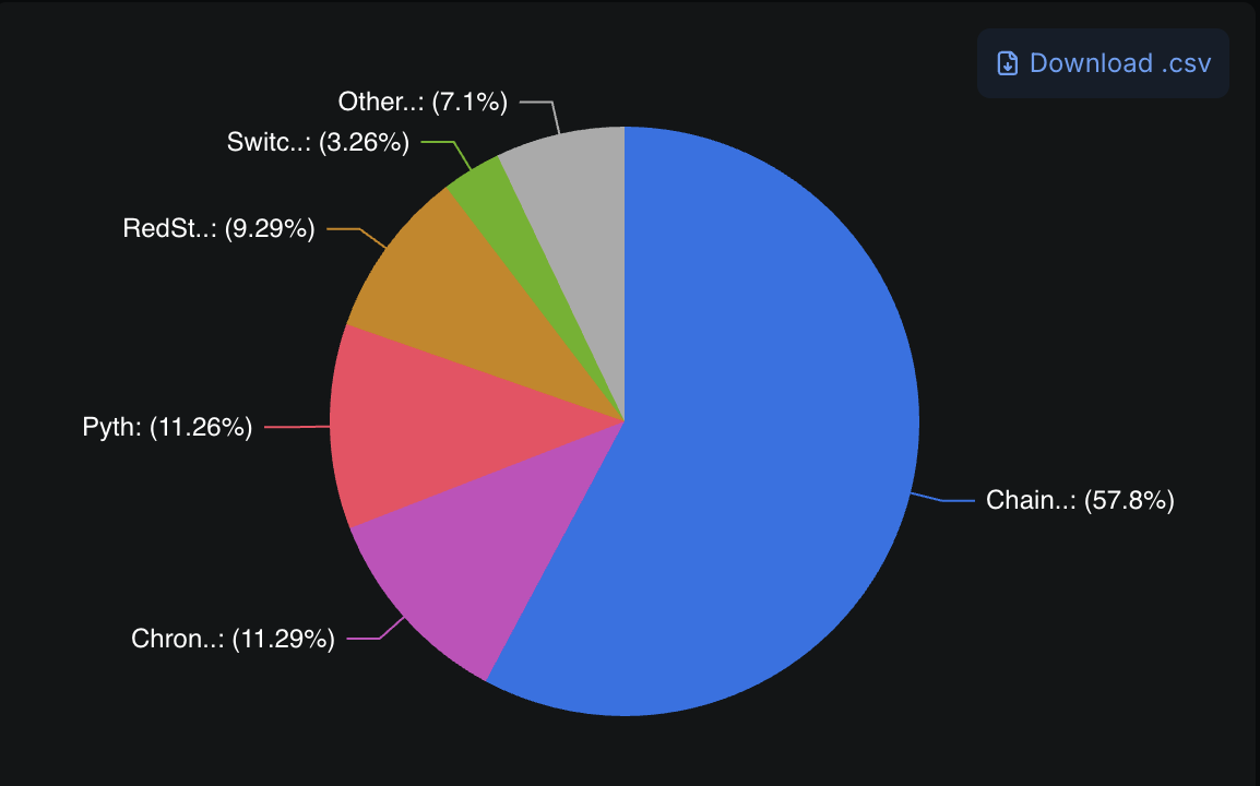 Согласно данным Defillama, Pyth в настоящее время командует примерно 11,3% от рынка Oracle Blockchain, по сравнению с примерно 10,8% доли рынка, о которой сообщается в сентябре 2024 года.