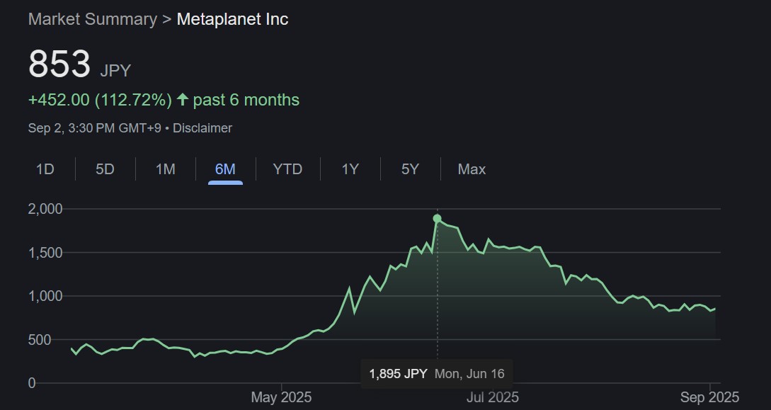Усилия Metaplanet по привлечению средств приходится на предмет недавнего снижения цен на акции. Во вторник данные Google Finance показали, что акции Metaplanet торгуются примерно на 5,74 доллара, что на 54% по сравнению с максимумом в 12,75 долл. США в июне.